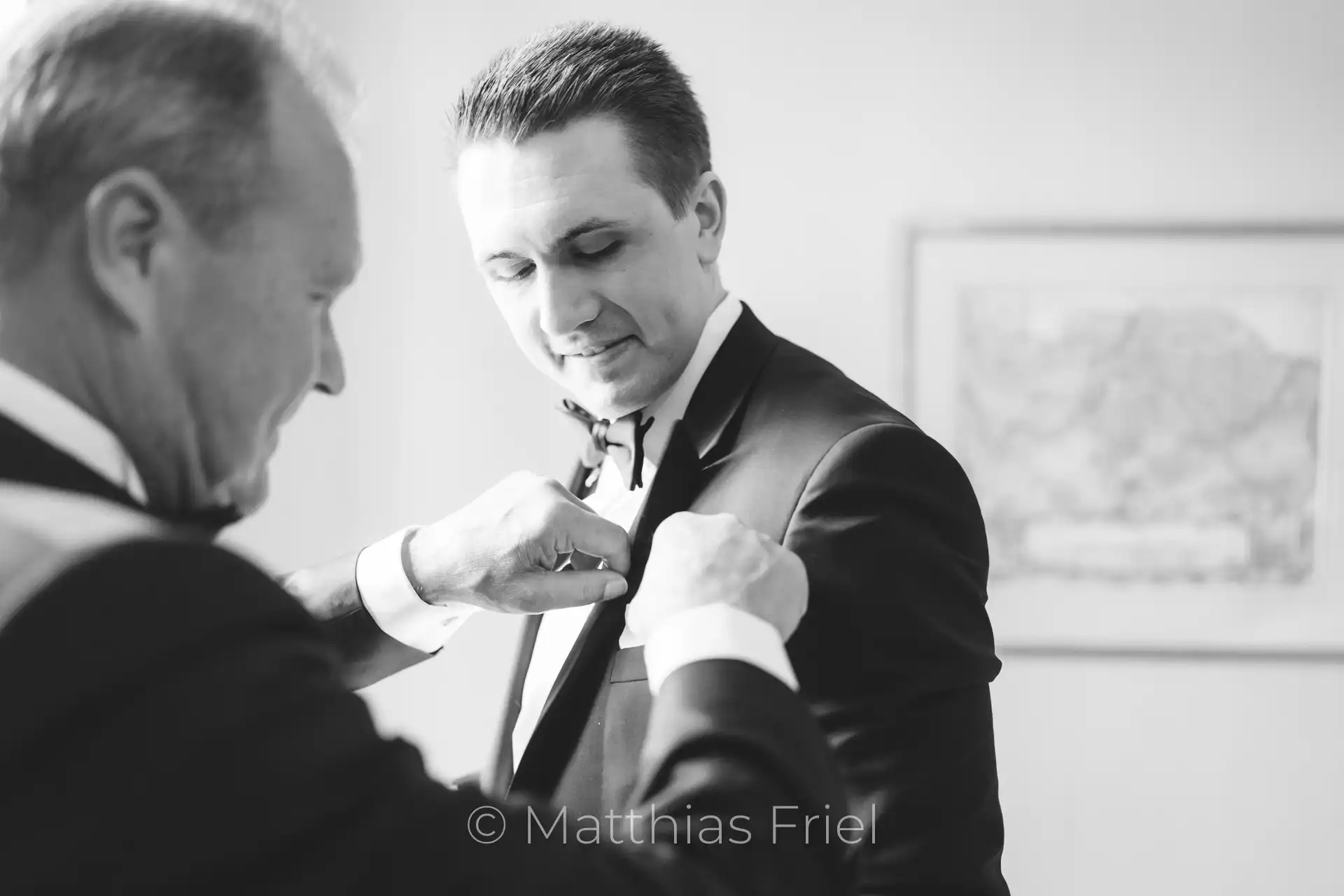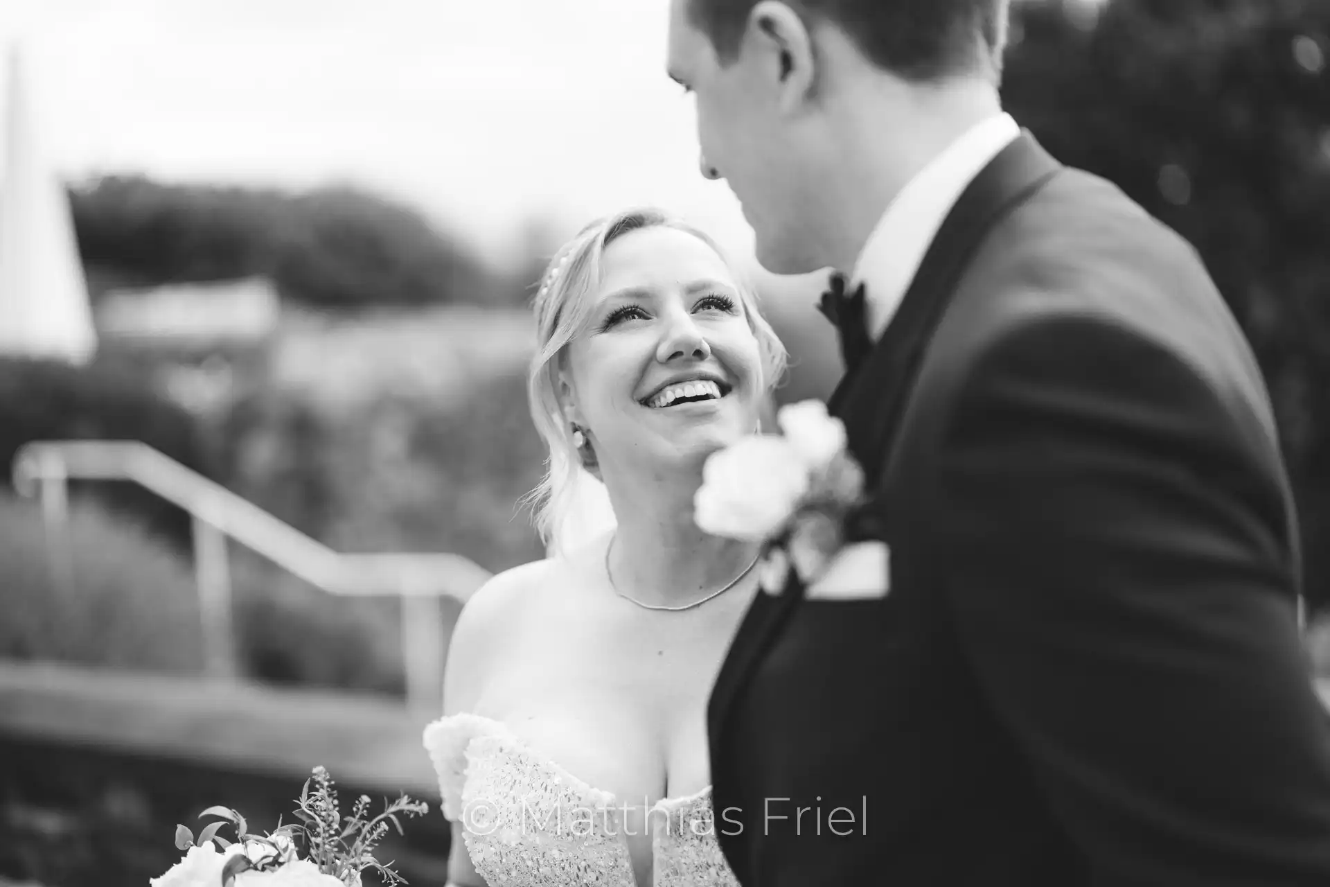 Sylvie kommt aus den USA, Max aus Deutschland. Zwei Leben, die irgendwo in der Mitte zueinander gefunden haben — und eine Hochzeit, die genau das widerspiegelte. Englisch und Deutsch wechselten sich ab, manchmal mitten im Satz. Familien, die sich zum ersten Mal begegneten. Freundschaften aus zwei Welten, die sich an diesem Tag mischten.